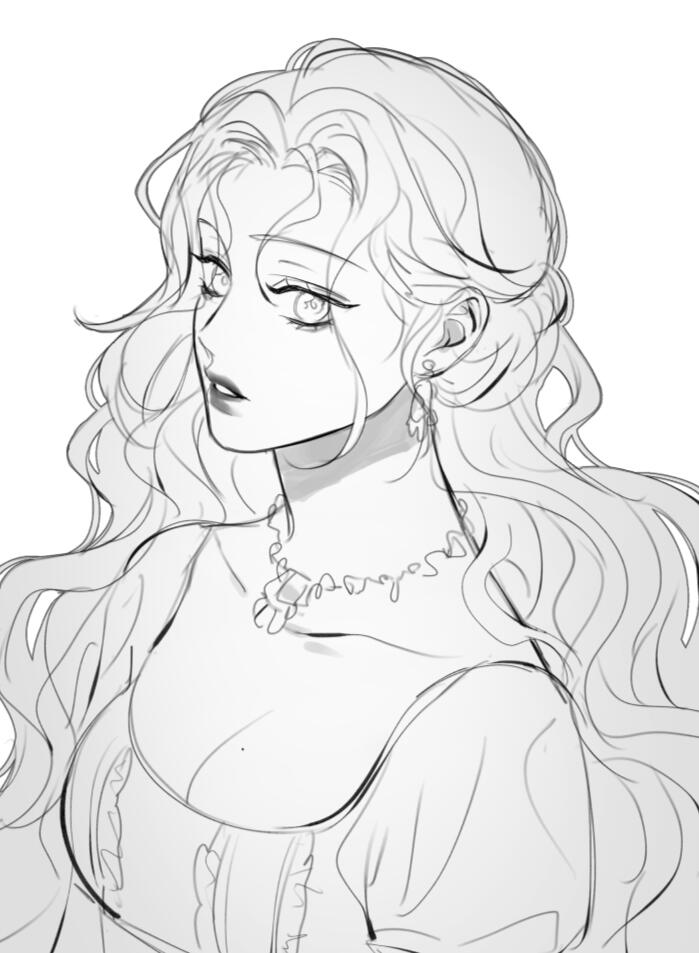 ✦ B&W เป็นภาพโทนขาวเทา เส้นรัฟ ไม่ถมดำผม สามารถลงเงาสีเทาหรือแต้มสีเป็นบางจุด